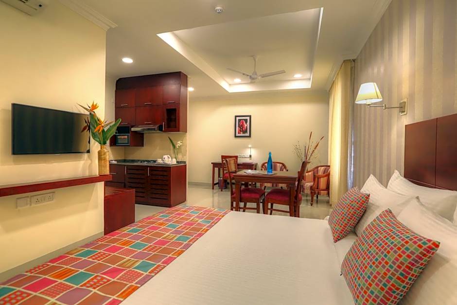 This one bed room apartment features a queen size bed, balcony in living room and fully-equipped kitchen. Please note that an extra bed cannot be accommodated in this room.